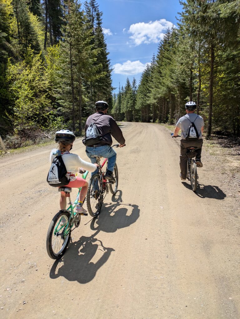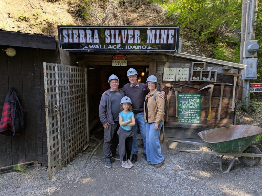 Over Mother’s Day weekend Fiona hosted a survival-themed farewell party for her friends on Jack and Ellen’s back property with her former survival instructor at the helm. The kids made their own communal shelter called “Kids Island” and had a riot cutting down small trees, orienteering using line of sight and a compass, foraging for food, and starting a large bonfire. We helped Laurie’s dad celebrate a milestone birthday, after he fixed up all our bikes, with a tour down the Route of The Hiawatha on opening day, stopping in a tunnel to blow out a candle. We also got a lesson in silver mining in Wallace, Idaho together, and enjoyed the Saint George’s School living wax museum, where Fiona represented famous American Civil War nurse, Clara Barton.