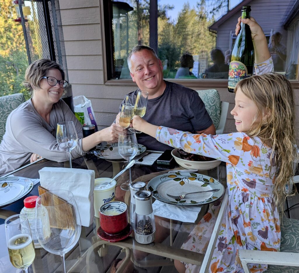 2025 began with making homemade quill pens and cattail paper on Clear Lake, skiing and snowshoeing on Mount Spokane (big shout out to Uncle Charlie who joined us on a weeknight), and visiting friends in California for horseback riding, canyoning, and spell casting at Harry Potter World. In early Spring Patrick successfully built, launched, and recovered a 6’ Estes rocket, gaining his official large engine certification. Laurie and friends tried flyfishing, mosaic making, wax painting, and electric scootering along the Spokane River. Fiona was proud of her school class performance “U.S. Geography”, which involved alien scouts singing about the merits of each U.S. region.