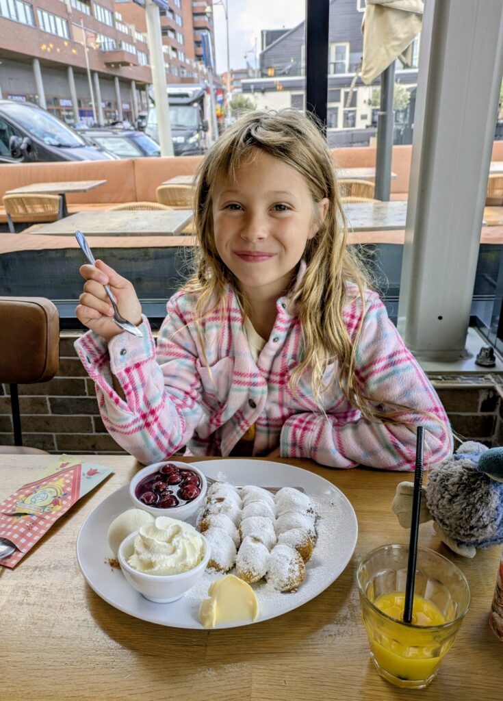 Up to this point preparing to leave had been one of the more challenging things we’ve done, but navigating the paperwork and uncertainty was just beginning upon landing in The Netherlands. We spent August and September in small one bedroom business travel apartments, which encouraged us to adventure around The Hague when we weren’t completely drained from adjusting to the time zone or figuring out how to do basic things in a new country. We especially enjoyed seeing Strandbeests in action along the North Sea, teaching Fiona to ride a bike, finding “The Girl with the Pearl Earring”, splurging on a Matcha themed High Tea, climbing the Grote Kerk tower, oogling large sailing ships coming into Amsterdam’s port for the SAIL festival, making splatter paint art, and cruising Rotterdam harbor while eating pancakes.